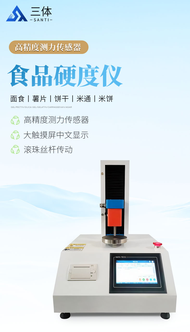 食品硬度儀適用于各類(lèi)面食、薯片、餅干、米通、米餅等焙烤食品物性測(cè)定,如餅干破裂強(qiáng)度測(cè)定、食品咀嚼性測(cè)定、餅干酥脆性測(cè)定、面包硬度測(cè)定、糖果硬度測(cè)定、果凍破裂強(qiáng)度測(cè)定等各類(lèi)休閑食品。