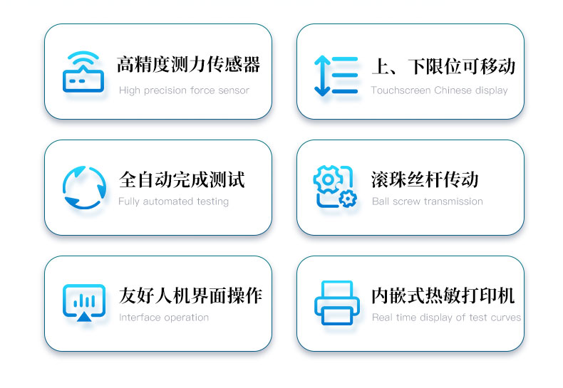 3、大觸摸屏中文顯示(可中英文切換),友好人機(jī)界面操作。全自動(dòng)完成測(cè)試。操作方便,具有測(cè)試數(shù)據(jù)統(tǒng)計(jì)處理功能。