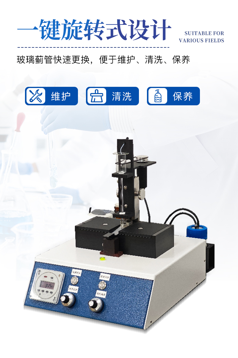?。?)一鍵旋轉(zhuǎn)式設(shè)計,玻璃薊管快速更換,便于維護(hù)、清洗、保養(yǎng);